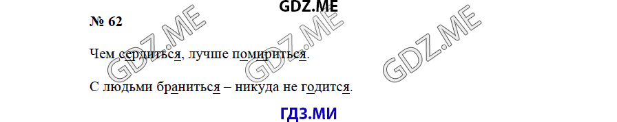 Подробный вариант решения из решебника (ГДЗ): Задание номер 62 (Часть 1) по предмету Русский язык, за 3 класс, авторы учебника Л.Ф. Климанова, Т.В. Бабушкина.