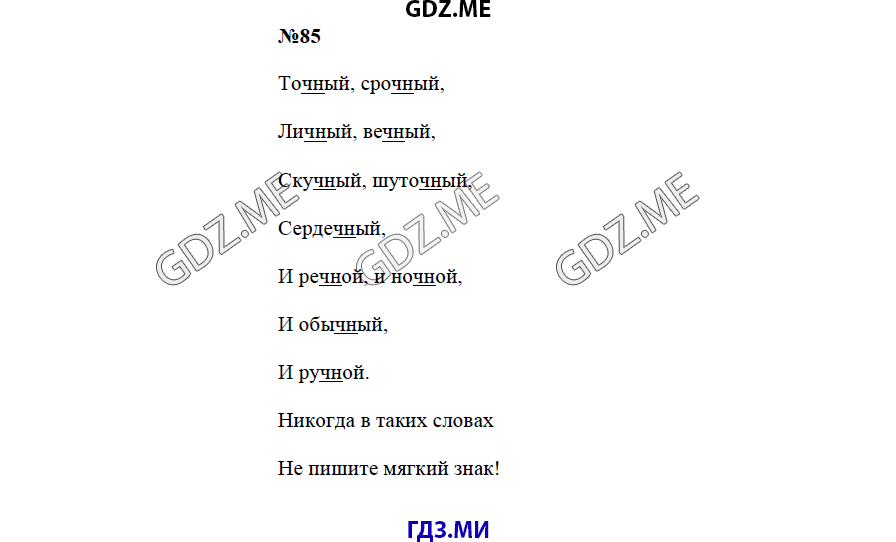 Подробный вариант решения из решебника (ГДЗ): Задание номер 85 (Часть 1) по предмету Русский язык, за 3 класс, авторы учебника Л.Ф. Климанова, Т.В. Бабушкина.