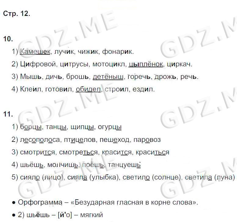 Подробный вариант решения из решебника (ГДЗ): Номер номер 12 (НОМЕРА РЕШЕНИЙ. Часть 1. Страницы 4-85) по предмету Русский язык, за 4 класс, авторы учебника Корешкова Т.В..