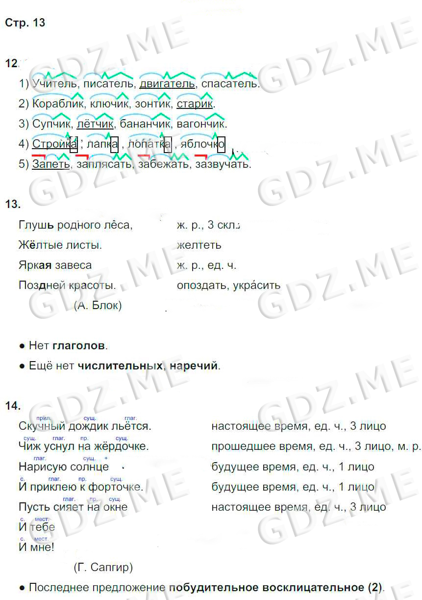 Подробный вариант решения из решебника (ГДЗ): Номер номер 13 (НОМЕРА РЕШЕНИЙ. Часть 1. Страницы 4-85) по предмету Русский язык, за 4 класс, авторы учебника Корешкова Т.В..