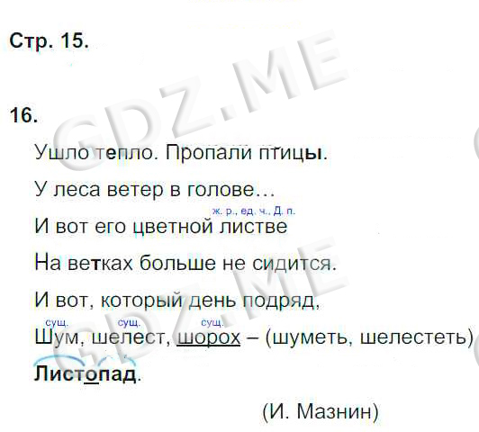 Подробный вариант решения из решебника (ГДЗ): Номер номер 15 (НОМЕРА РЕШЕНИЙ. Часть 1. Страницы 4-85) по предмету Русский язык, за 4 класс, авторы учебника Корешкова Т.В..