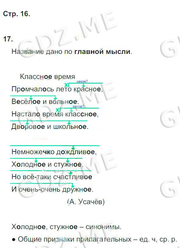 Подробный вариант решения из решебника (ГДЗ): Номер номер 16 (НОМЕРА РЕШЕНИЙ. Часть 1. Страницы 4-85) по предмету Русский язык, за 4 класс, авторы учебника Корешкова Т.В..