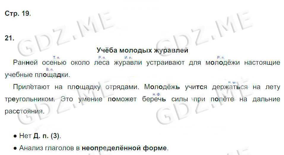 Подробный вариант решения из решебника (ГДЗ): Номер номер 19 (НОМЕРА РЕШЕНИЙ. Часть 1. Страницы 4-85) по предмету Русский язык, за 4 класс, авторы учебника Корешкова Т.В..