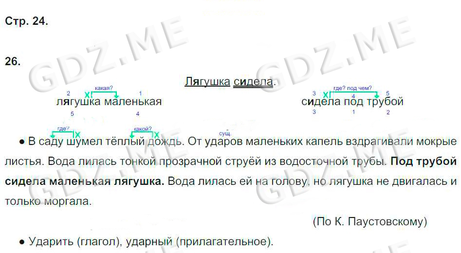 Подробный вариант решения из решебника (ГДЗ): Номер номер 24 (НОМЕРА РЕШЕНИЙ. Часть 1. Страницы 4-85) по предмету Русский язык, за 4 класс, авторы учебника Корешкова Т.В..