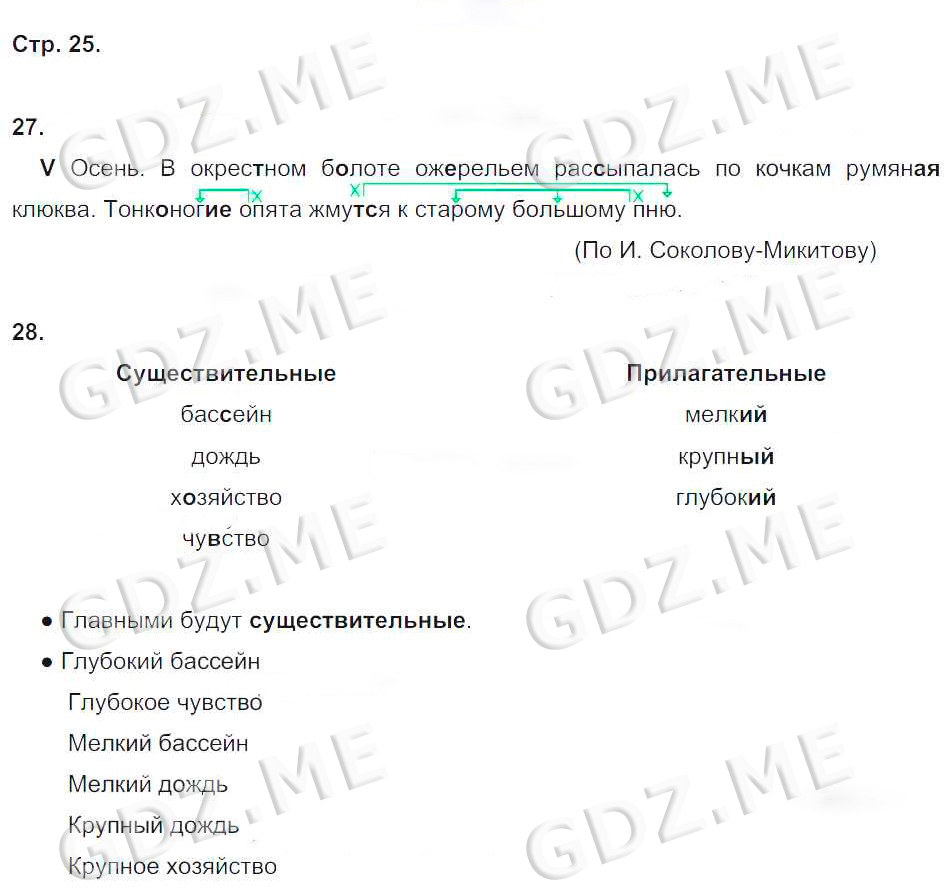 Подробный вариант решения из решебника (ГДЗ): Номер номер 25 (НОМЕРА РЕШЕНИЙ. Часть 1. Страницы 4-85) по предмету Русский язык, за 4 класс, авторы учебника Корешкова Т.В..