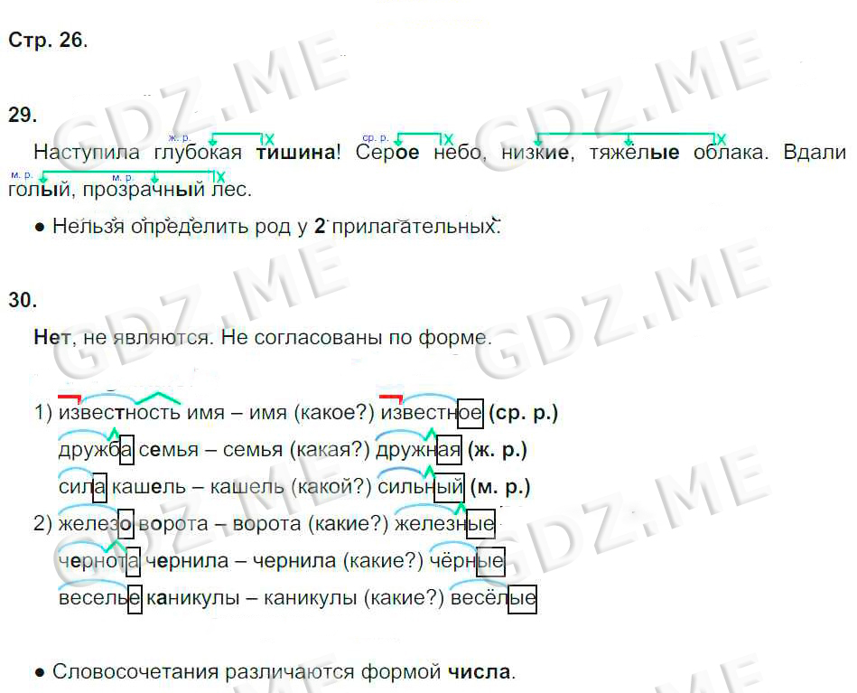Подробный вариант решения из решебника (ГДЗ): Номер номер 26 (НОМЕРА РЕШЕНИЙ. Часть 1. Страницы 4-85) по предмету Русский язык, за 4 класс, авторы учебника Корешкова Т.В..