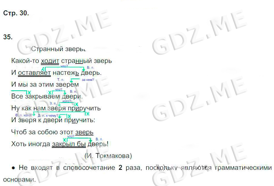 Подробный вариант решения из решебника (ГДЗ): Номер номер 30 (НОМЕРА РЕШЕНИЙ. Часть 1. Страницы 4-85) по предмету Русский язык, за 4 класс, авторы учебника Корешкова Т.В..