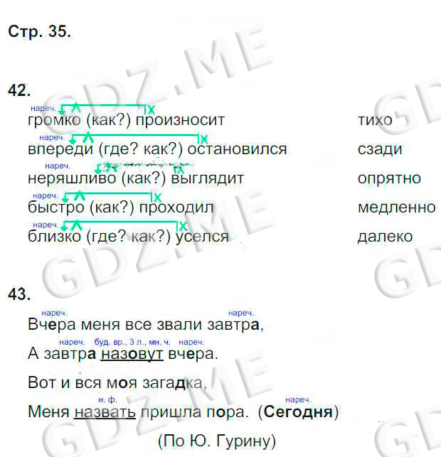 Подробный вариант решения из решебника (ГДЗ): Номер номер 35 (НОМЕРА РЕШЕНИЙ. Часть 1. Страницы 4-85) по предмету Русский язык, за 4 класс, авторы учебника Корешкова Т.В..