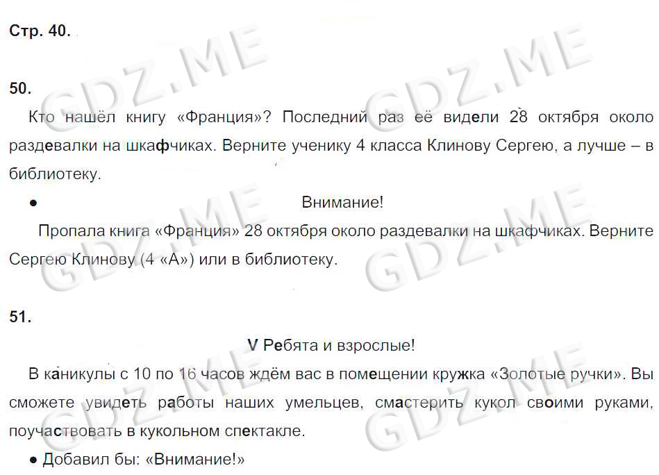 Подробный вариант решения из решебника (ГДЗ): Номер номер 40 (НОМЕРА РЕШЕНИЙ. Часть 1. Страницы 4-85) по предмету Русский язык, за 4 класс, авторы учебника Корешкова Т.В..