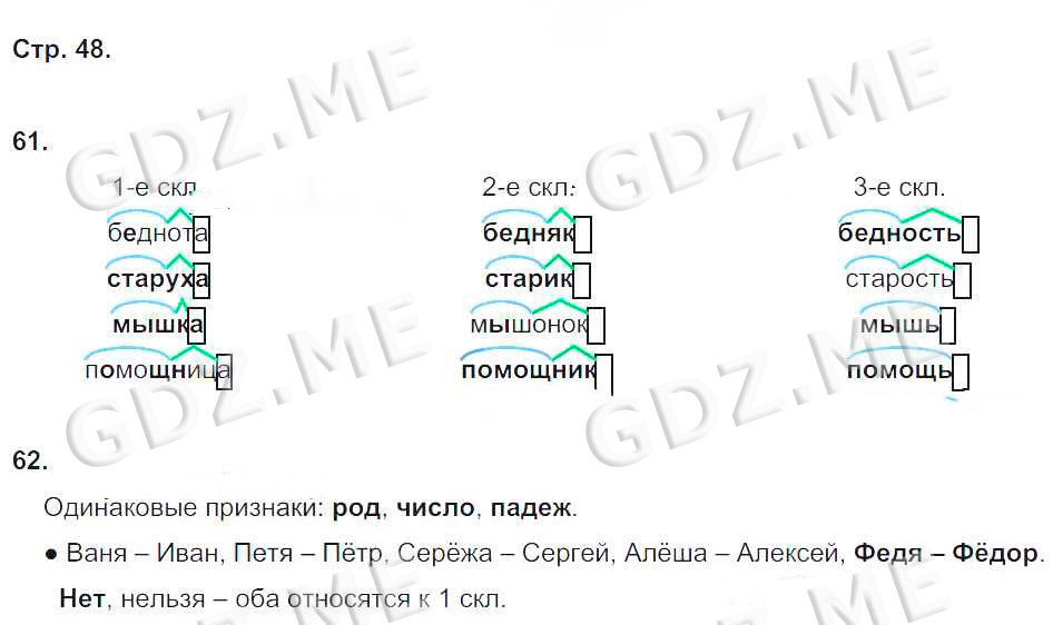 Подробный вариант решения из решебника (ГДЗ): Номер номер 48 (НОМЕРА РЕШЕНИЙ. Часть 1. Страницы 4-85) по предмету Русский язык, за 4 класс, авторы учебника Корешкова Т.В..