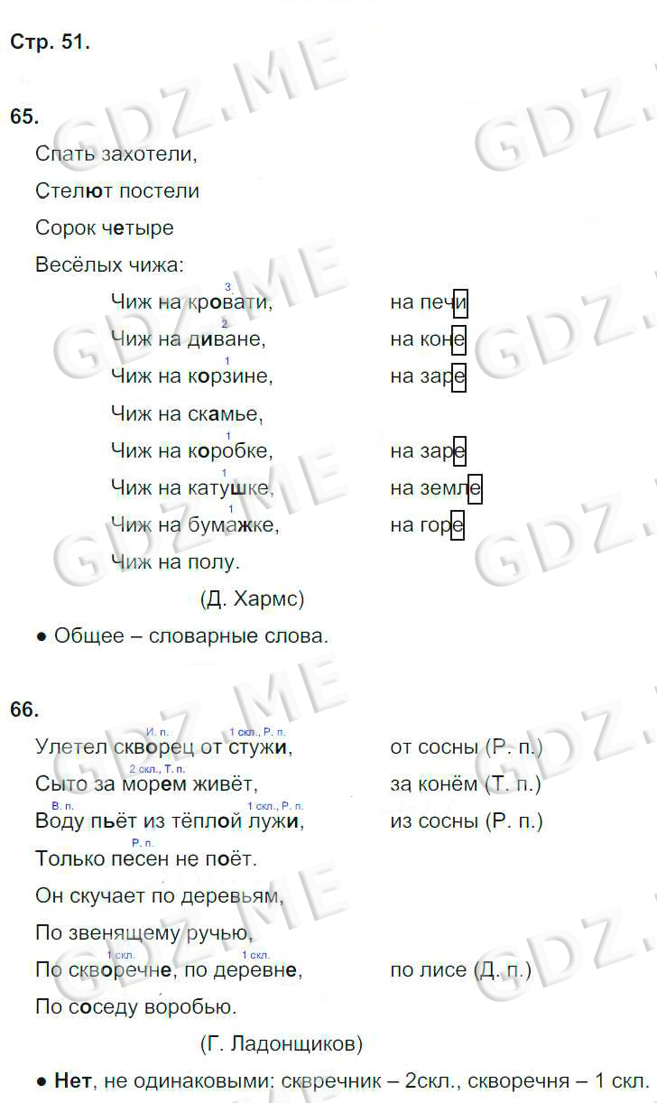 Подробный вариант решения из решебника (ГДЗ): Номер номер 51 (НОМЕРА РЕШЕНИЙ. Часть 1. Страницы 4-85) по предмету Русский язык, за 4 класс, авторы учебника Корешкова Т.В..