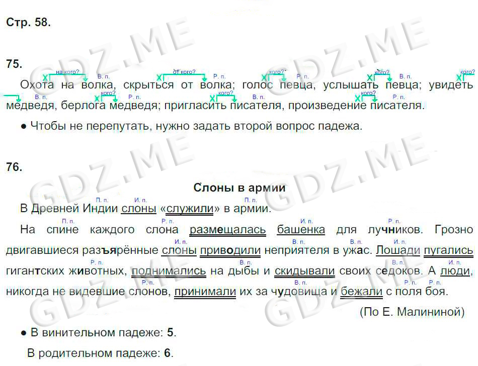 Подробный вариант решения из решебника (ГДЗ): Номер номер 58 (НОМЕРА РЕШЕНИЙ. Часть 1. Страницы 4-85) по предмету Русский язык, за 4 класс, авторы учебника Корешкова Т.В..