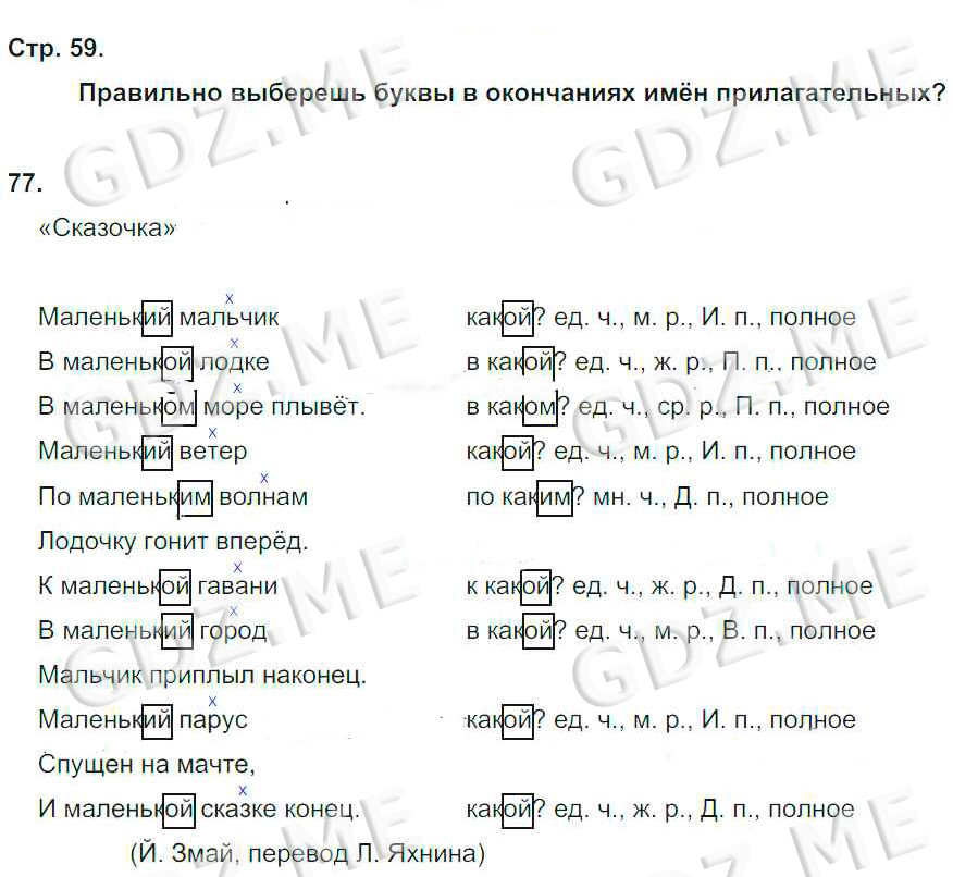 Подробный вариант решения из решебника (ГДЗ): Номер номер 59 (НОМЕРА РЕШЕНИЙ. Часть 1. Страницы 4-85) по предмету Русский язык, за 4 класс, авторы учебника Корешкова Т.В..