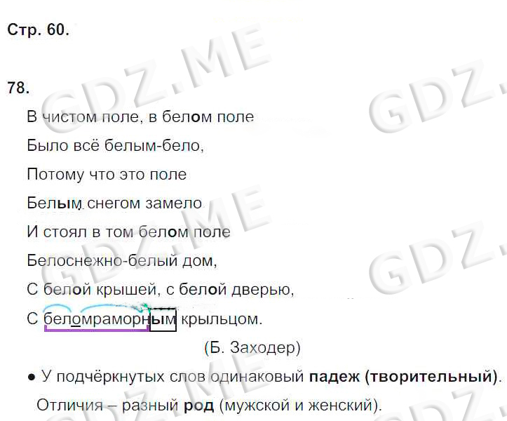 Подробный вариант решения из решебника (ГДЗ): Номер номер 60 (НОМЕРА РЕШЕНИЙ. Часть 1. Страницы 4-85) по предмету Русский язык, за 4 класс, авторы учебника Корешкова Т.В..