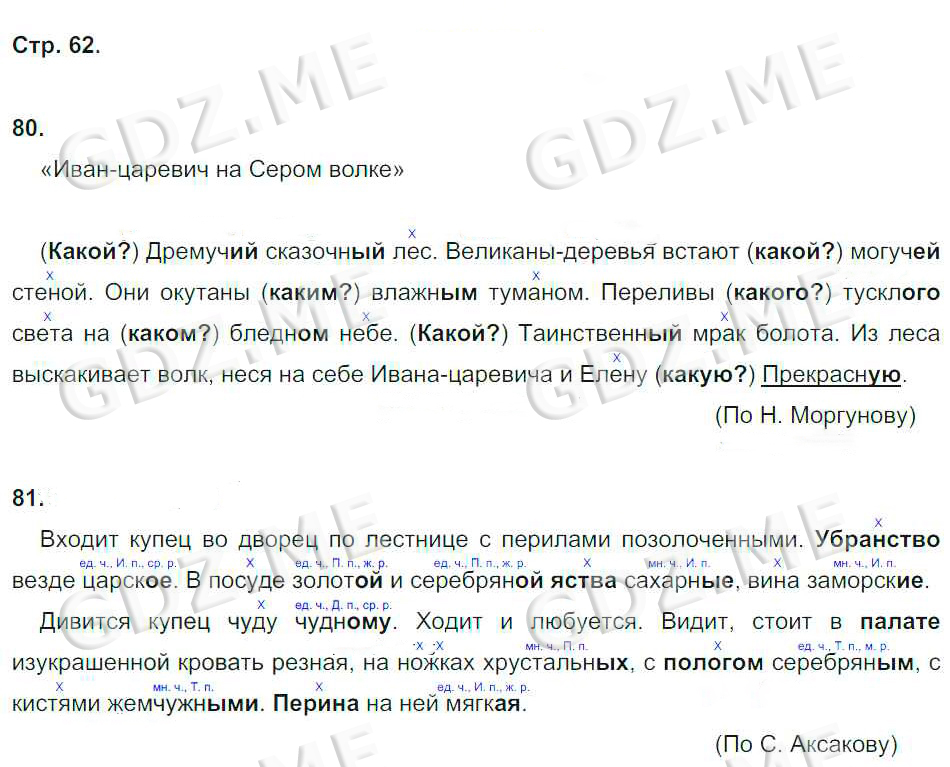 Подробный вариант решения из решебника (ГДЗ): Номер номер 62 (НОМЕРА РЕШЕНИЙ. Часть 1. Страницы 4-85) по предмету Русский язык, за 4 класс, авторы учебника Корешкова Т.В..