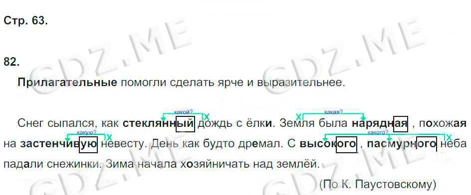 Подробный вариант решения из решебника (ГДЗ): Номер номер 63 (НОМЕРА РЕШЕНИЙ. Часть 1. Страницы 4-85) по предмету Русский язык, за 4 класс, авторы учебника Корешкова Т.В..