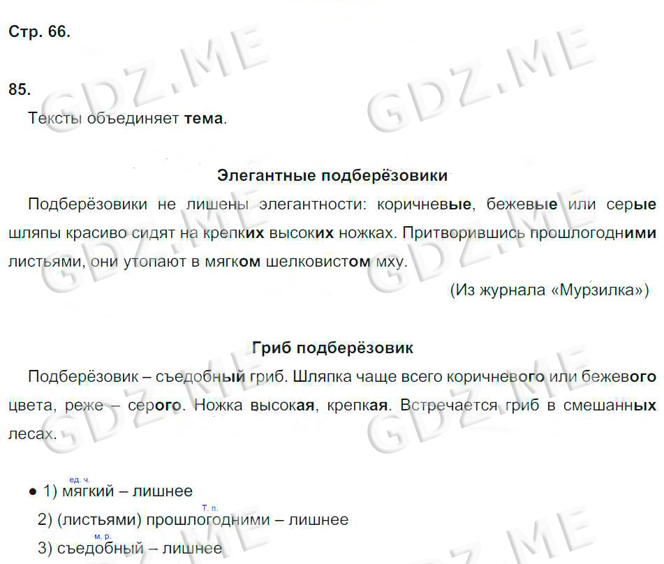 Подробный вариант решения из решебника (ГДЗ): Номер номер 66 (НОМЕРА РЕШЕНИЙ. Часть 1. Страницы 4-85) по предмету Русский язык, за 4 класс, авторы учебника Корешкова Т.В..