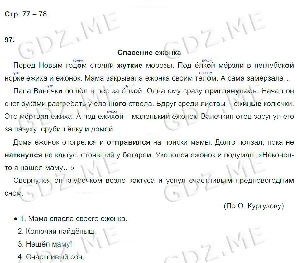 Подробный вариант решения из решебника (ГДЗ): Номер номер 77 (НОМЕРА РЕШЕНИЙ. Часть 1. Страницы 4-85) по предмету Русский язык, за 4 класс, авторы учебника Корешкова Т.В..