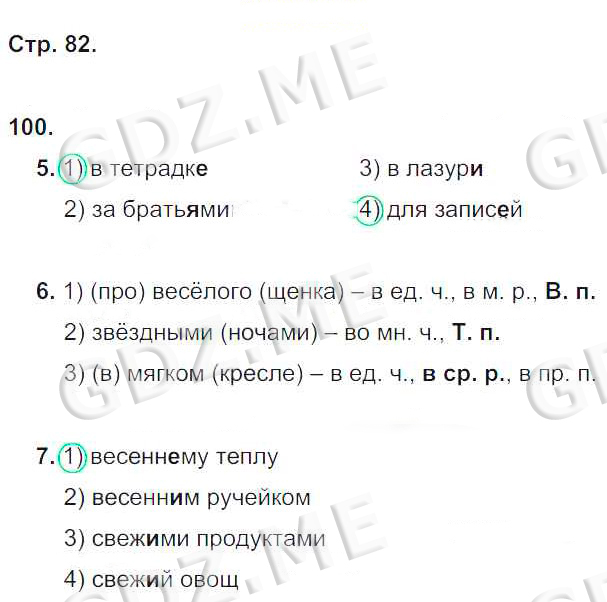 Подробный вариант решения из решебника (ГДЗ): Номер номер 82 (НОМЕРА РЕШЕНИЙ. Часть 1. Страницы 4-85) по предмету Русский язык, за 4 класс, авторы учебника Корешкова Т.В..