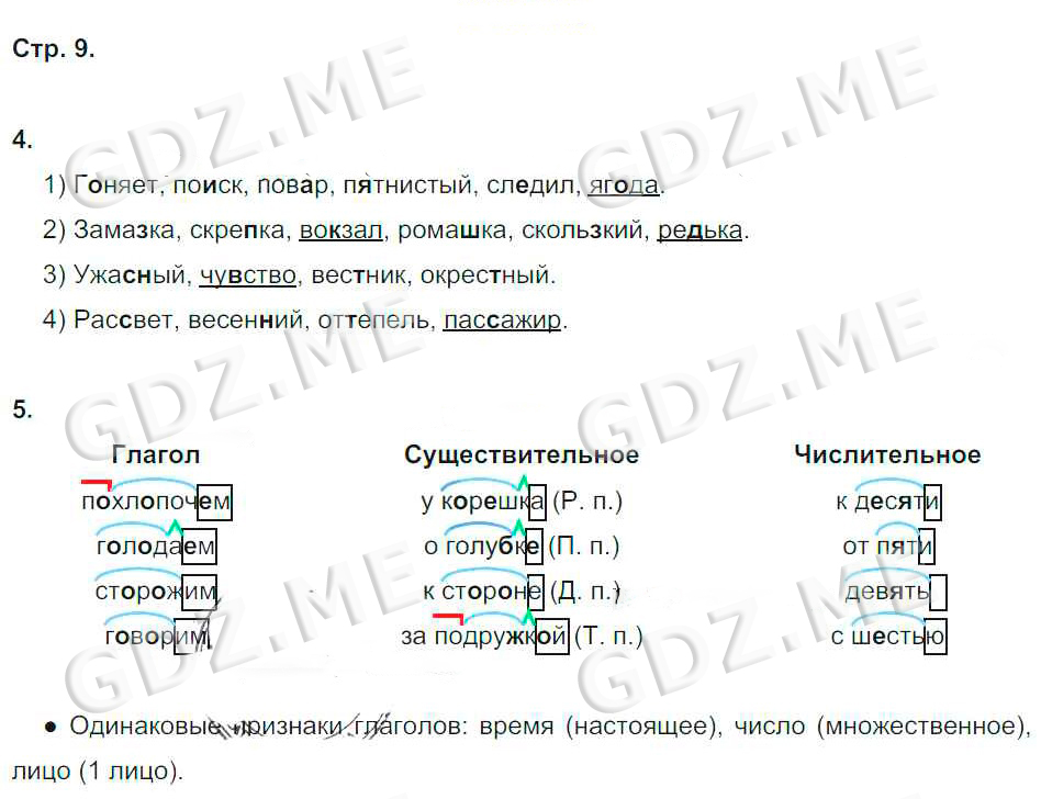 Подробный вариант решения из решебника (ГДЗ): Номер номер 9 (НОМЕРА РЕШЕНИЙ. Часть 1. Страницы 4-85) по предмету Русский язык, за 4 класс, авторы учебника Корешкова Т.В..