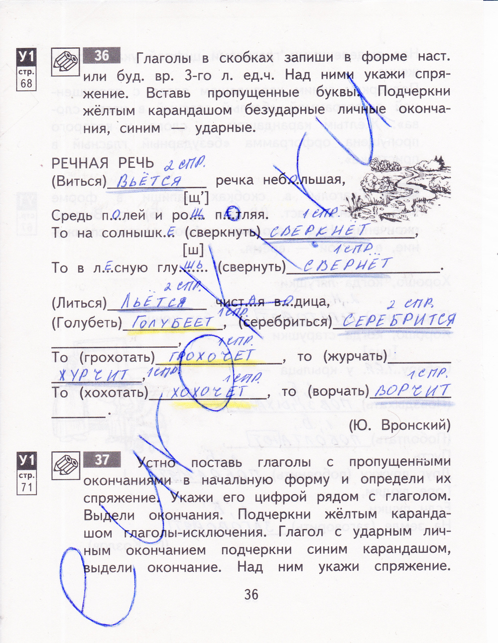 Подробный вариант решения из решебника (ГДЗ): Страница номер 36 (Часть 1) по предмету Русский язык, за 4 класс, авторы учебника Байкова Т.А. .