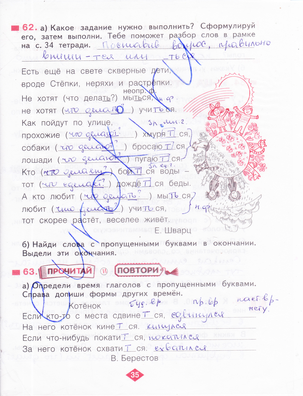 Рабочая тетрадь по русскому языку за 4 класс авторов Нечаевой Н.В., Воскресенской Н.Е. 2015 года издания. Предлагаемый сборник разделен по структуре на 4 части, в каждом из которых содержится несколько вопросов по текущему учебному материалу и 26-29 заданий на повторение пройдённого материала.