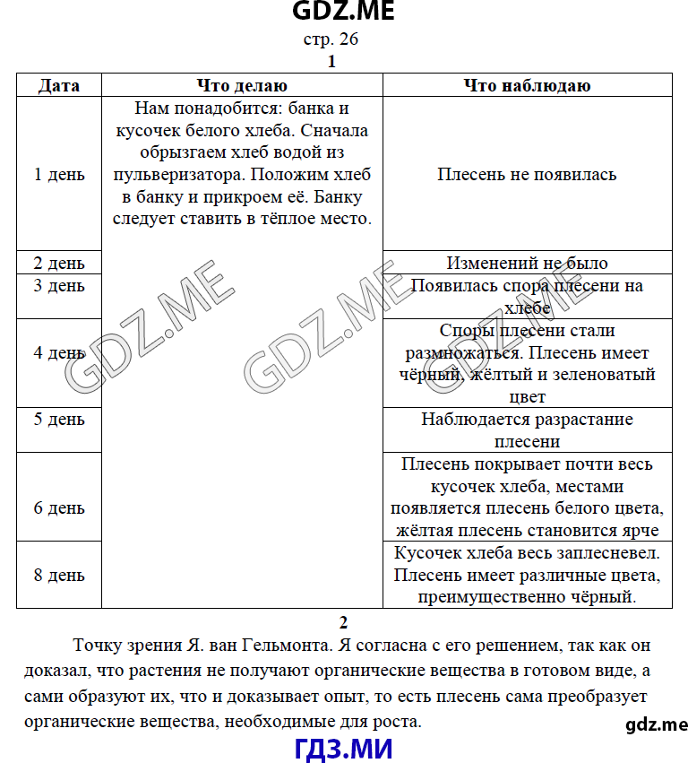Подробный вариант решения из решебника (ГДЗ): Страница номер 26 (Часть 1) по предмету Биология, за 6 класс, авторы учебника Сухова Т.С., Строганов В.И..