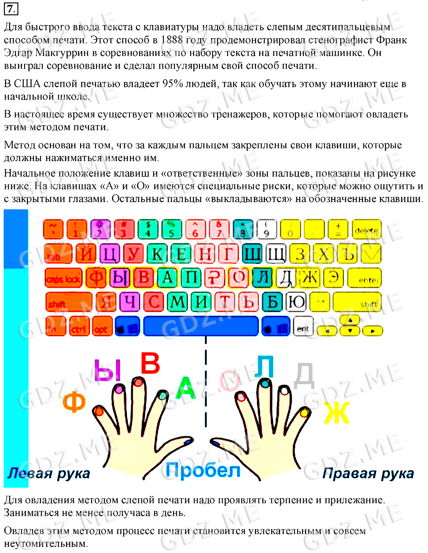 Подробный вариант решения из решебника (ГДЗ): Задание номер 7 (§3. Ввод информации в память компьютера. Cтраницы 17-24) по предмету Информатика, за 5 класс, авторы учебника Босова.