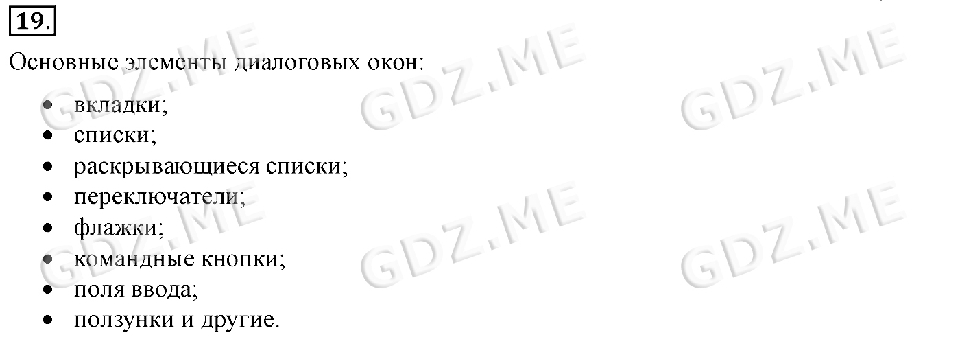 Подробный вариант решения из решебника (ГДЗ): Задание номер 19 (§4. Управление компьютером. Cтраницы 25-34) по предмету Информатика, за 5 класс, авторы учебника Босова.