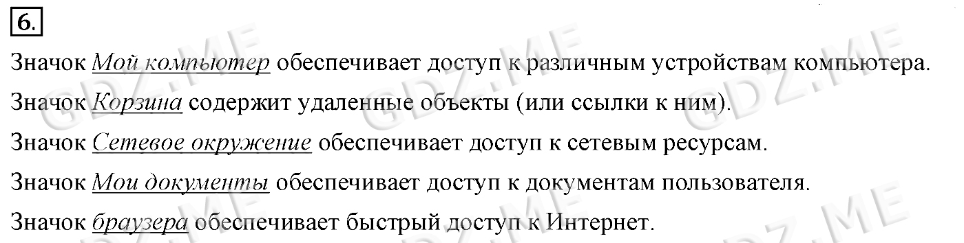 Подробный вариант решения из решебника (ГДЗ): Задание номер 6 (§4. Управление компьютером. Cтраницы 25-34) по предмету Информатика, за 5 класс, авторы учебника Босова.