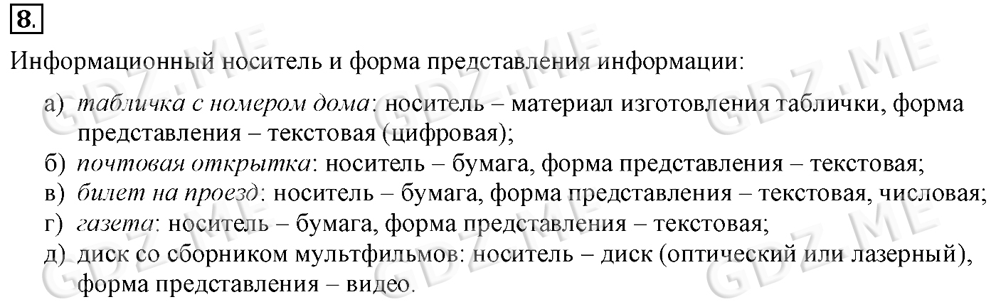 Подробный вариант решения из решебника (ГДЗ): Задание номер 8 (§5. Хранение информации. Cтраницы 35-40) по предмету Информатика, за 5 класс, авторы учебника Босова.