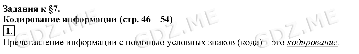 Подробный вариант решения из решебника (ГДЗ): Задание номер 1 (§7. Кодирование информации. Cтраницы 46-54) по предмету Информатика, за 5 класс, авторы учебника Босова.