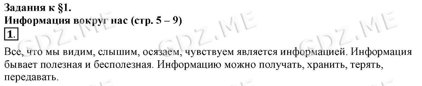 Подробный вариант решения из решебника (ГДЗ): Задание номер 1 (§1. Информация вокруг нас. Cтраницы 5-9) по предмету Информатика, за 5 класс, авторы учебника Босова.