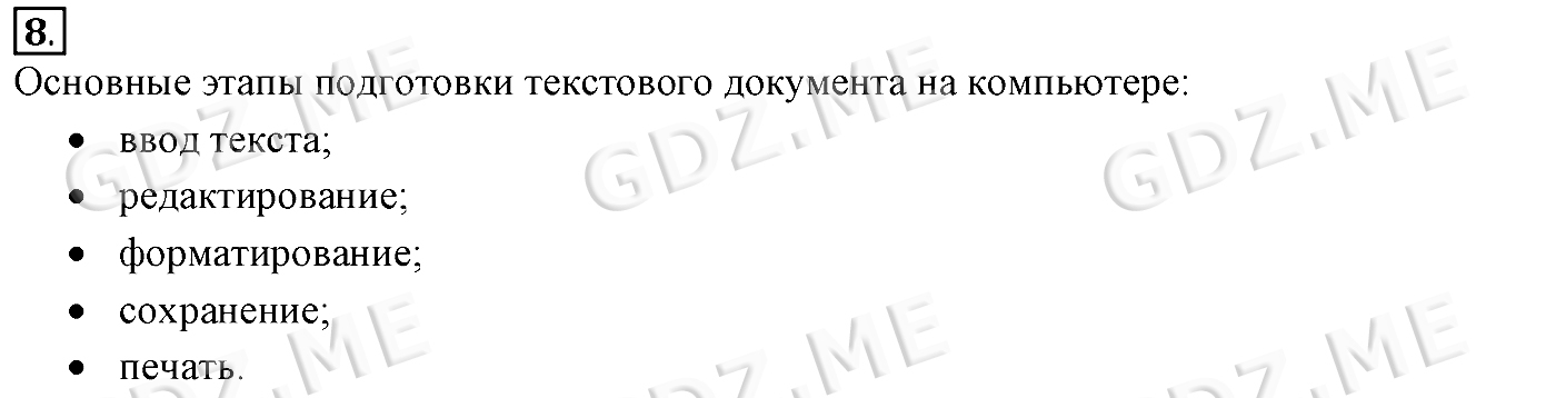 Подробный вариант решения из решебника (ГДЗ): Задание номер 8 (§8. Текстовая информация. Cтраницы 55-63) по предмету Информатика, за 5 класс, авторы учебника Босова.