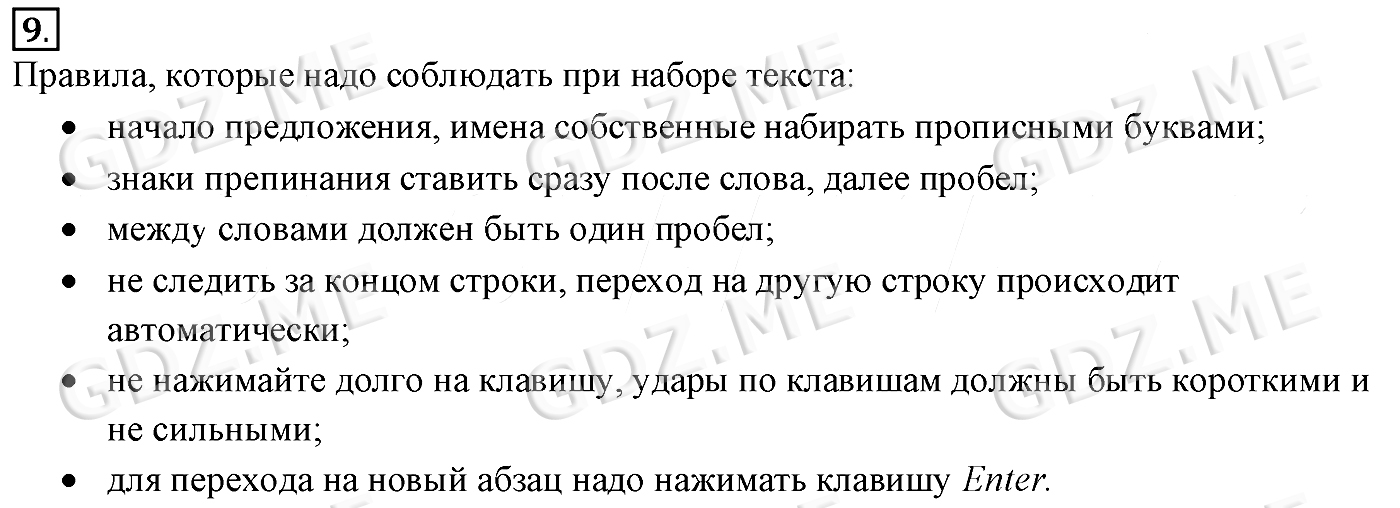 Подробный вариант решения из решебника (ГДЗ): Задание номер 9 (§8. Текстовая информация. Cтраницы 55-63) по предмету Информатика, за 5 класс, авторы учебника Босова.