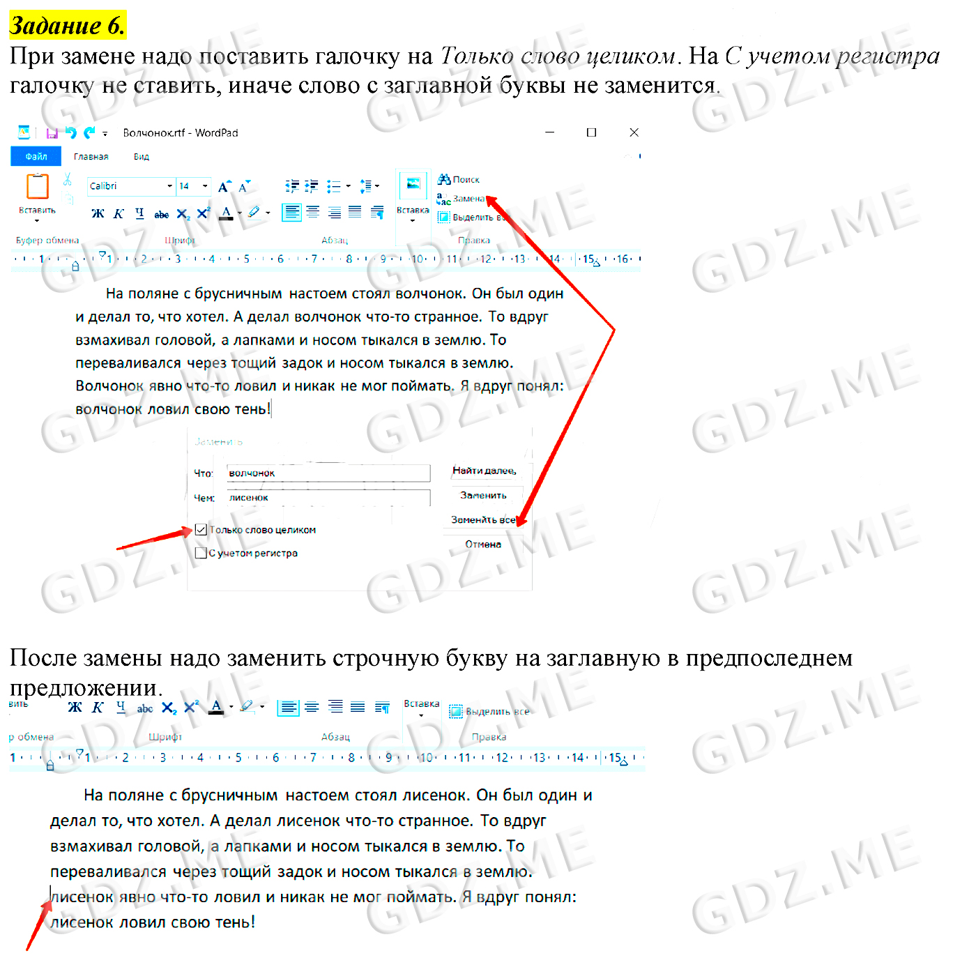 Подробный вариант решения из решебника (ГДЗ): Задание номер 6 (§8. Текстовая информация. Cтраницы 55-63:. Компьютерный практикум. Работа 7. "Работаем с фрагментами текста") по предмету Информатика, за 5 класс, авторы учебника Босова.