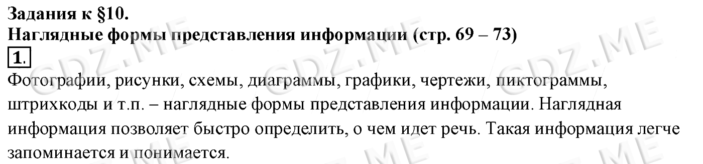 Подробный вариант решения из решебника (ГДЗ): Задание номер 1 (§10. Наглядные формы представления информации. Cтраницы 69-73) по предмету Информатика, за 5 класс, авторы учебника Босова.
