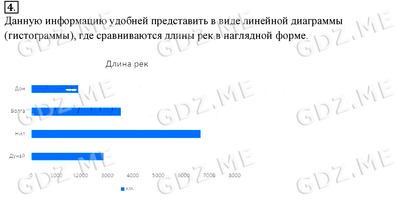 Подробный вариант решения из решебника (ГДЗ): Задание номер 4 (§10. Наглядные формы представления информации. Cтраницы 69-73) по предмету Информатика, за 5 класс, авторы учебника Босова.