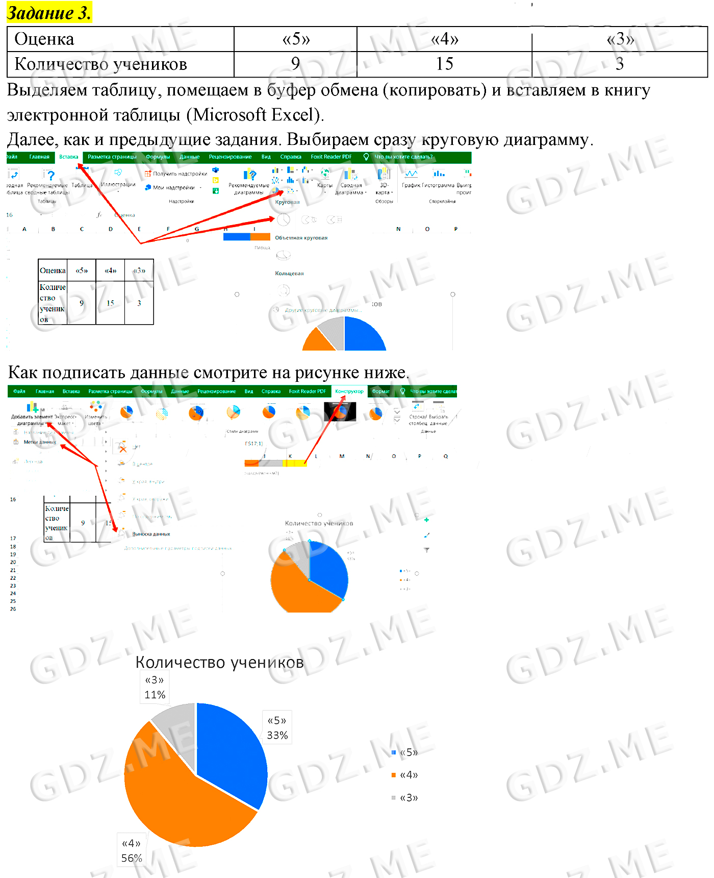 Подробный вариант решения из решебника (ГДЗ): Задание номер 3 (§10. Наглядные формы представления информации. Cтраницы 69-73:. Компьютерный практикум. Работа 10. "Строим диаграммы") по предмету Информатика, за 5 класс, авторы учебника Босова.