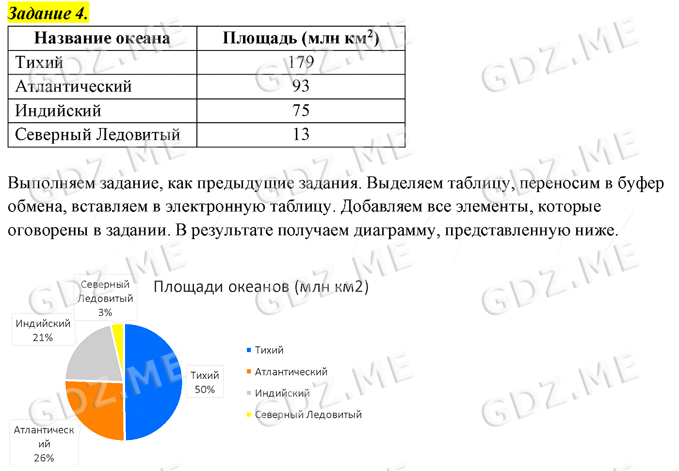 Подробный вариант решения из решебника (ГДЗ): Задание номер 4 (§10. Наглядные формы представления информации. Cтраницы 69-73:. Компьютерный практикум. Работа 10. "Строим диаграммы") по предмету Информатика, за 5 класс, авторы учебника Босова.