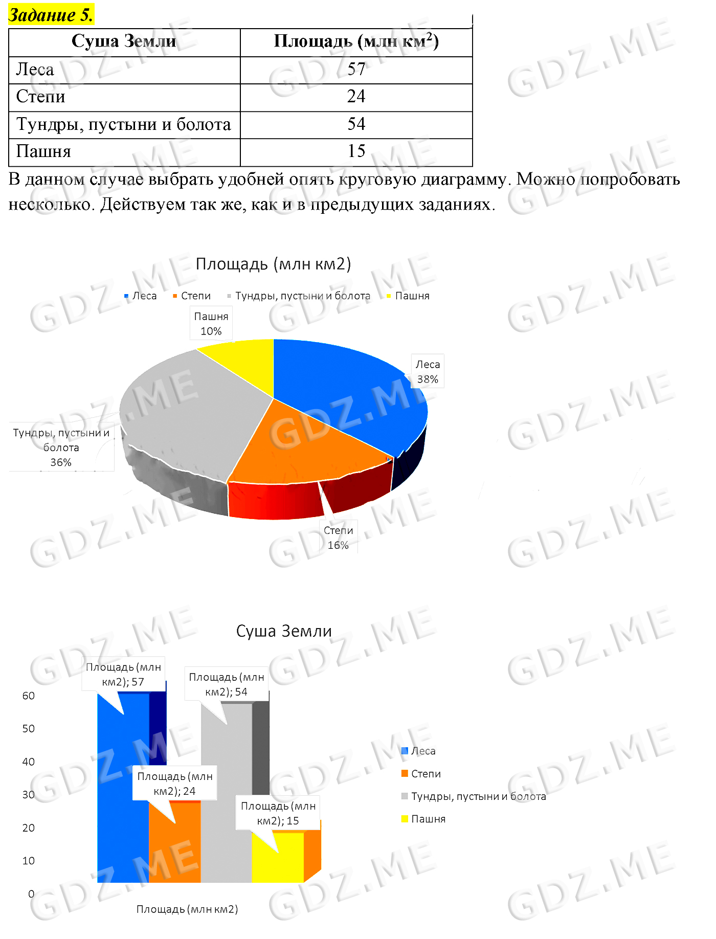 Подробный вариант решения из решебника (ГДЗ): Задание номер 5 (§10. Наглядные формы представления информации. Cтраницы 69-73:. Компьютерный практикум. Работа 10. "Строим диаграммы") по предмету Информатика, за 5 класс, авторы учебника Босова.