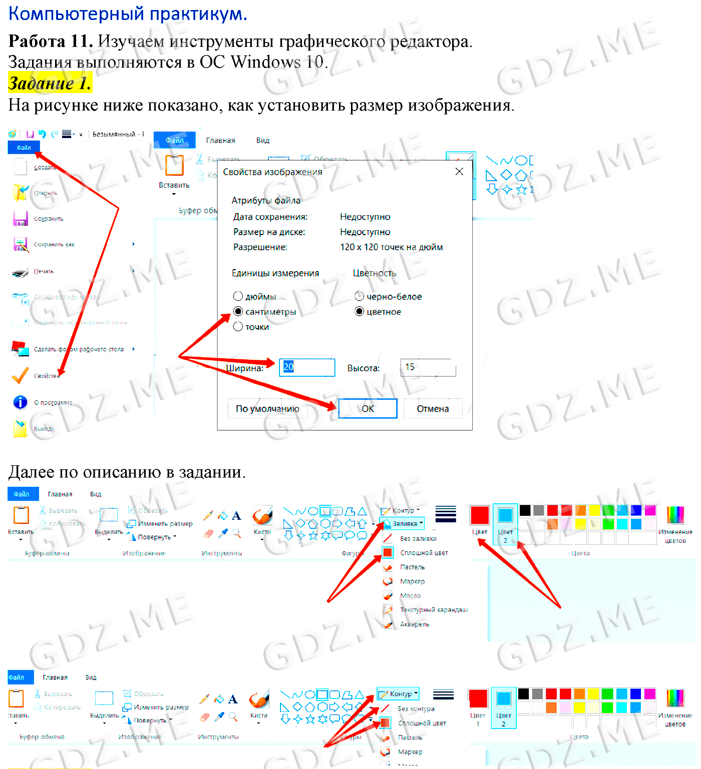 Подробный вариант решения из решебника (ГДЗ): Задание номер 1 (§11. Компьютерная графика. Cтраницы 74-82:. Компьютерный практикум. Работа 11. "Изучаем инструменты графического редактора") по предмету Информатика, за 5 класс, авторы учебника Босова.