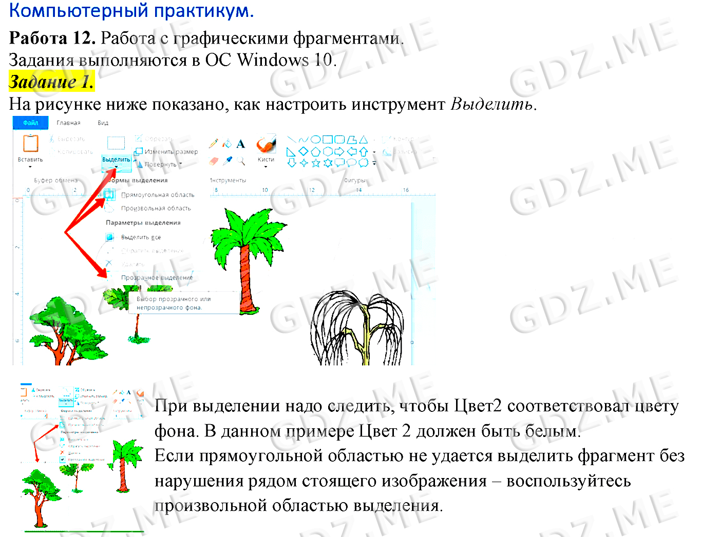 Подробный вариант решения из решебника (ГДЗ): Задание номер 1 (§11. Компьютерная графика. Cтраницы 74-82:. Компьютерный практикум. Работа 12. "Работаем с графическими фрагментами") по предмету Информатика, за 5 класс, авторы учебника Босова.