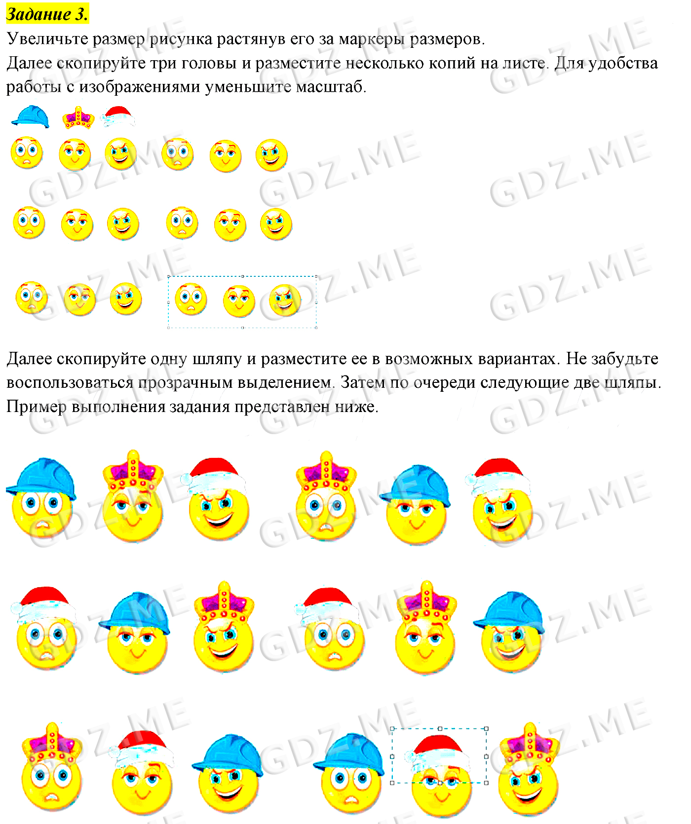 Подробный вариант решения из решебника (ГДЗ): Задание номер 3 (§11. Компьютерная графика. Cтраницы 74-82:. Компьютерный практикум. Работа 12. "Работаем с графическими фрагментами") по предмету Информатика, за 5 класс, авторы учебника Босова.