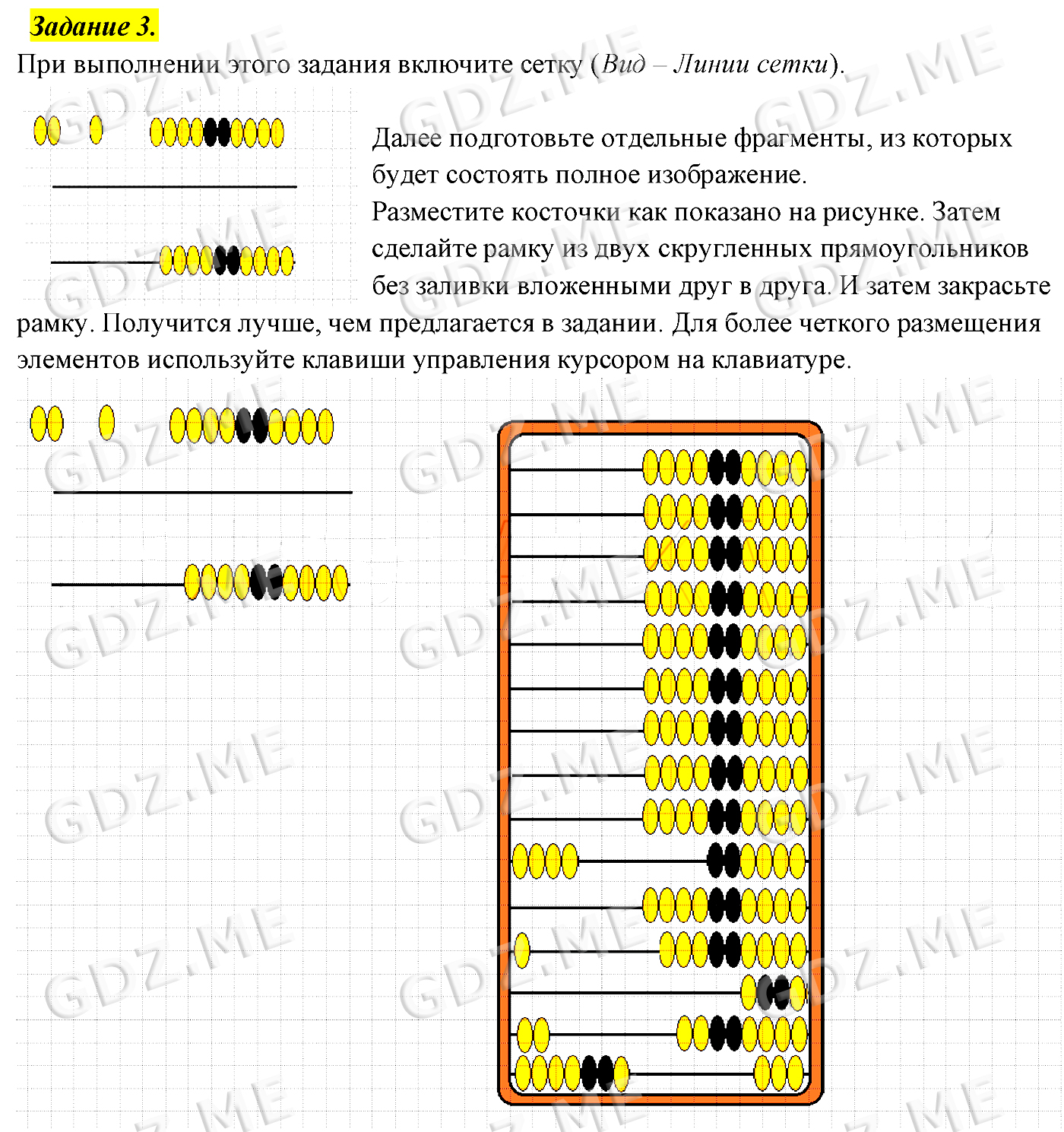 Подробный вариант решения из решебника (ГДЗ): Задание номер 3 (§11. Компьютерная графика. Cтраницы 74-82:. Компьютерный практикум. Работа 13. "Планируем работу в графическом редакторе") по предмету Информатика, за 5 класс, авторы учебника Босова.