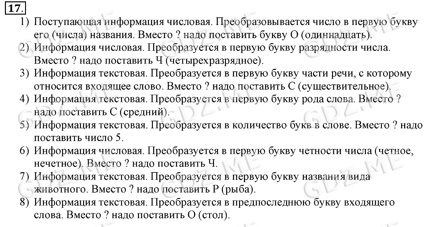 Подробный вариант решения из решебника (ГДЗ): Задание номер 17 (§12. Обработка информации. Cтраницы 74-82) по предмету Информатика, за 5 класс, авторы учебника Босова.