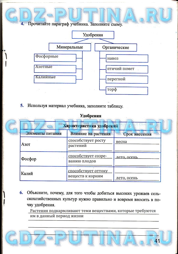Подробный вариант решения из решебника (ГДЗ): Страница номер 41 по предмету Биология, за 6 класс, авторы учебника Преображенская Н.В., Пасечник В.В. .