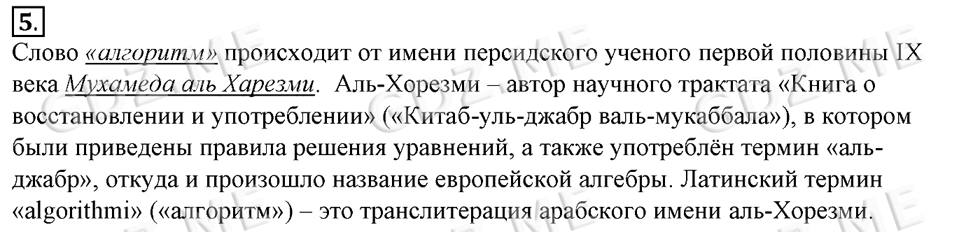 Подробный вариант решения из решебника (ГДЗ): Задание номер 5 (§14. Что такое алгоритм. Cтраницы 104-107) по предмету Информатика, за 6 класс, авторы учебника Босова.