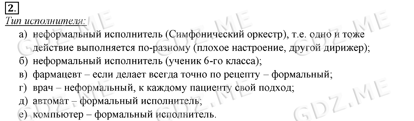 Подробный вариант решения из решебника (ГДЗ): Задание номер 2 (§15. Исполнители вокруг нас. Cтраницы 108-113) по предмету Информатика, за 6 класс, авторы учебника Босова.