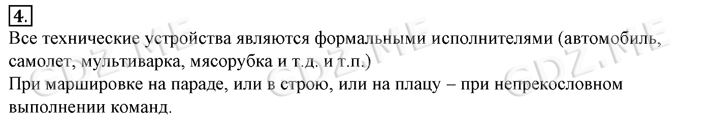 Подробный вариант решения из решебника (ГДЗ): Задание номер 4 (§15. Исполнители вокруг нас. Cтраницы 108-113) по предмету Информатика, за 6 класс, авторы учебника Босова.